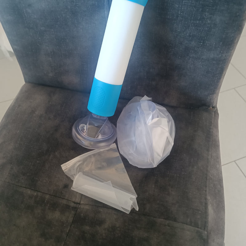 To use it, you just place the mask over the mouth and nose, press to create a secure seal and pull back the handle.